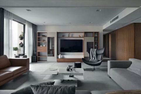 • 業主是一對年年輕的新婚夫妻,這套房子使他們的婚房,男業主干練穩健,女業主知性活潑,現代風格中的灰色調非常適合他們,灰色調中點綴一些亮色,讓整個空間不再壓抑