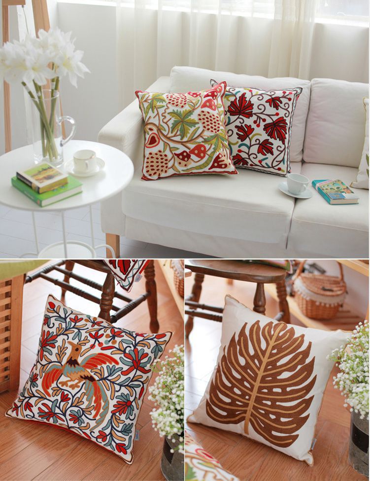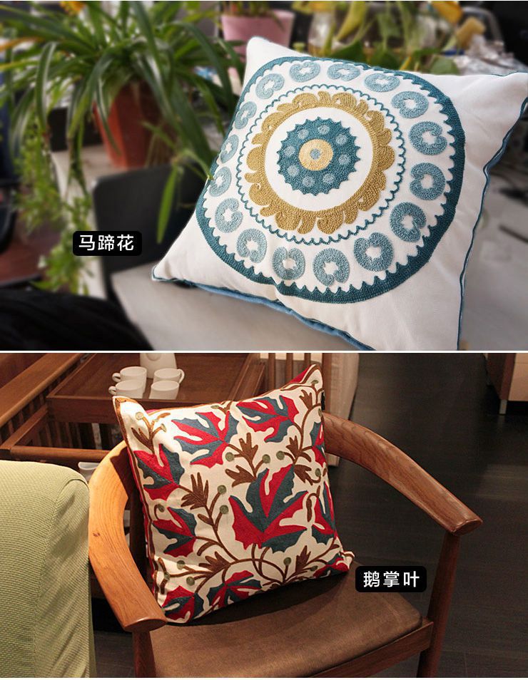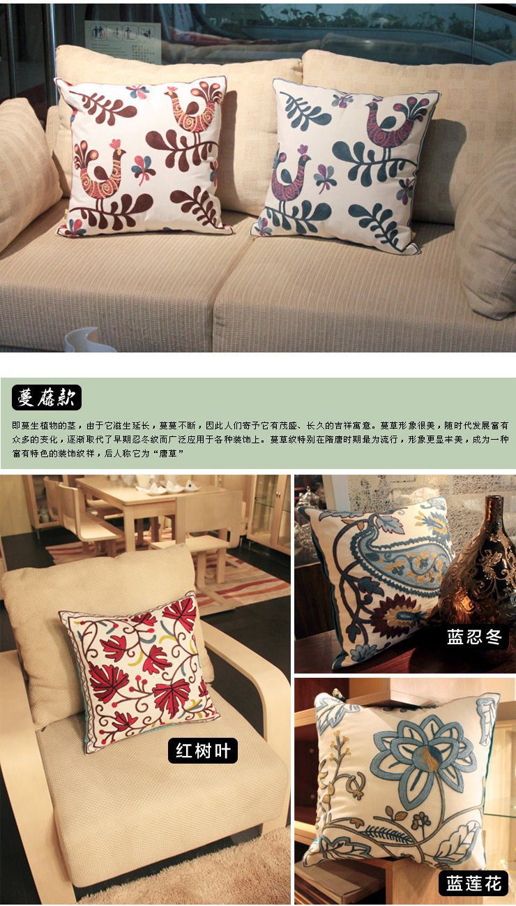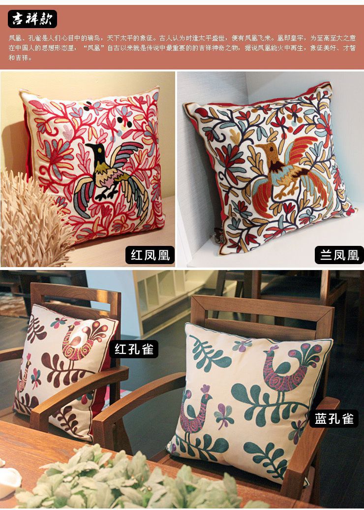 中國風 田園刺繡吉祥喜慶圖案 居家沙發(fā) 靠墊時尚居家抱枕(含枕芯)