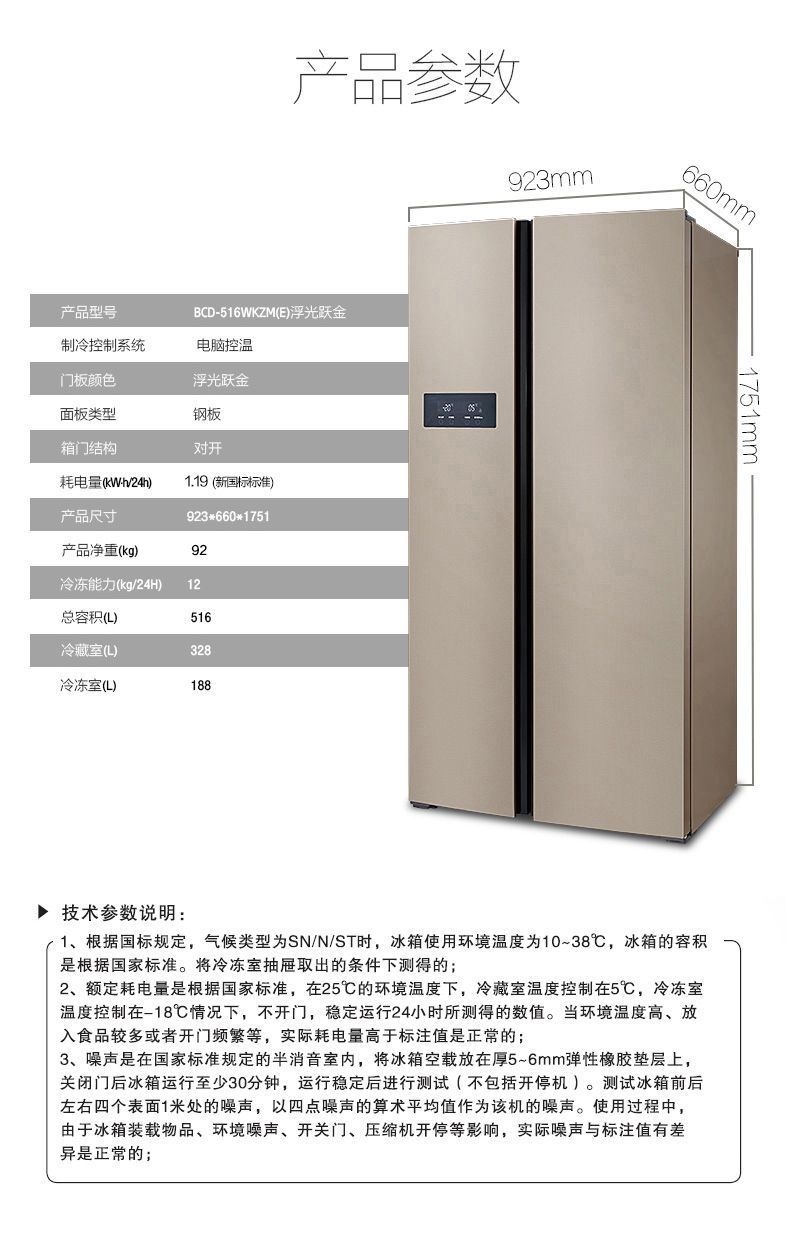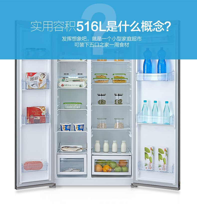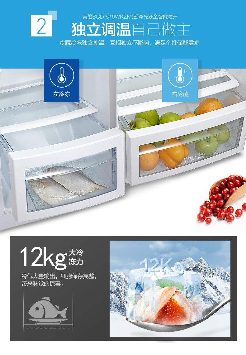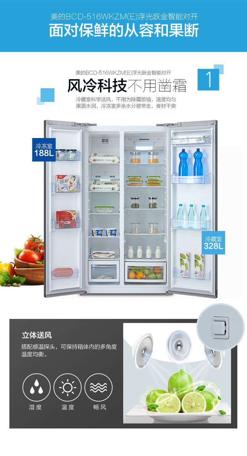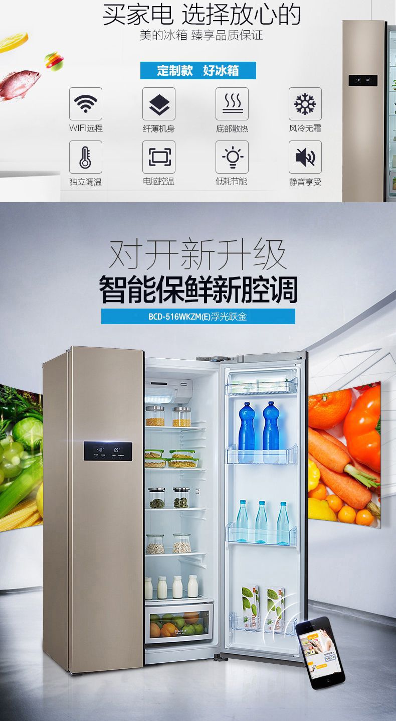 Midea/美的 BCD-516WKZM(E)對(duì)開門電冰箱/雙門智能風(fēng)冷無霜冰箱