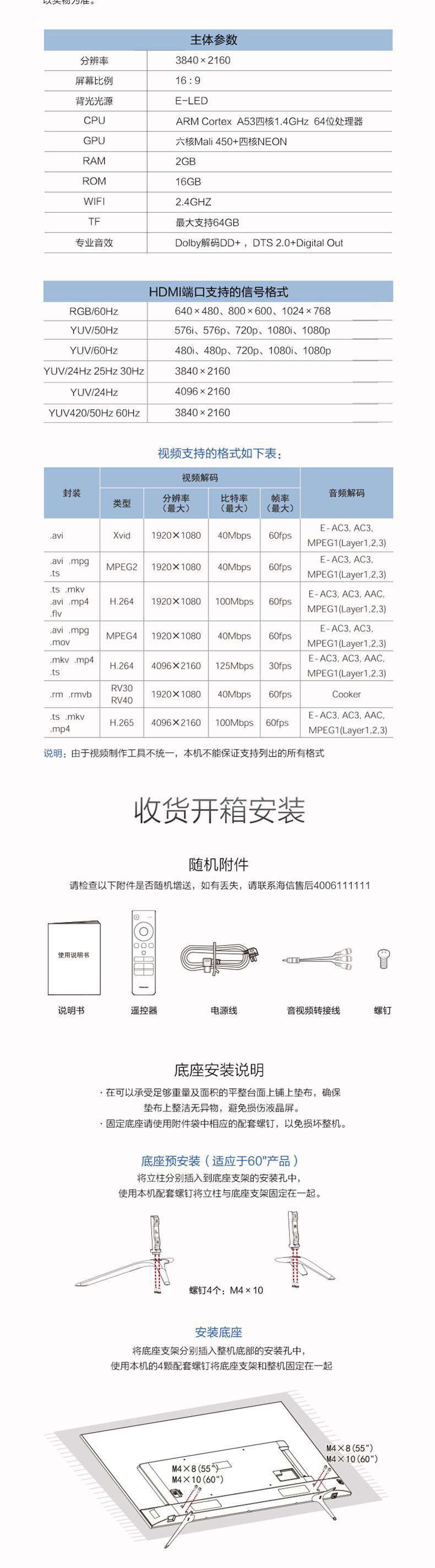 Hisense/海信 LED60EC720US 60吋超薄4K智能液晶電視機平板65HDR