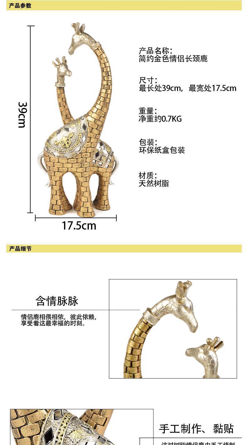創(chuàng)意歐式 家居裝飾樹(shù)脂 金黃色 情侶長(zhǎng)頸鹿 工藝品 客廳玄關(guān)擺件 創(chuàng)意結(jié)婚禮物